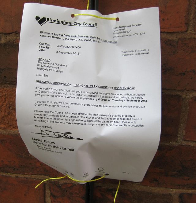 The Birmingham Tenants & Homelessness Action Group have vowed to ignore this notice and resist any attempted eviction.