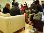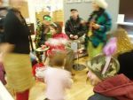 One of the objectives of the day was to take back space that had been entirely neutralised, and put it to a different use, or give it a different aesthetic. In keeping with this idea, the Topshop mannequins were treated to quick make-over of rubbish, including some banana neckwear, and a kid’s stethoscope. Taking this idea a step further, we endeavoured to practice some Corporate Feng-Shui, where we could take items from one part of the store and move them to another - where they weren’t intended - but would create a more desirable aesthetic for the potential consumer. It was thus decided that we would decorate the House of Fraser home section into our own living room, fit for a Christmas party. Decorations and tinsel were taken from the floor above, the stereo was plugged in, party hats were distributed and cakes, drinks and jelly were consumed. It was a delightful festive gathering.