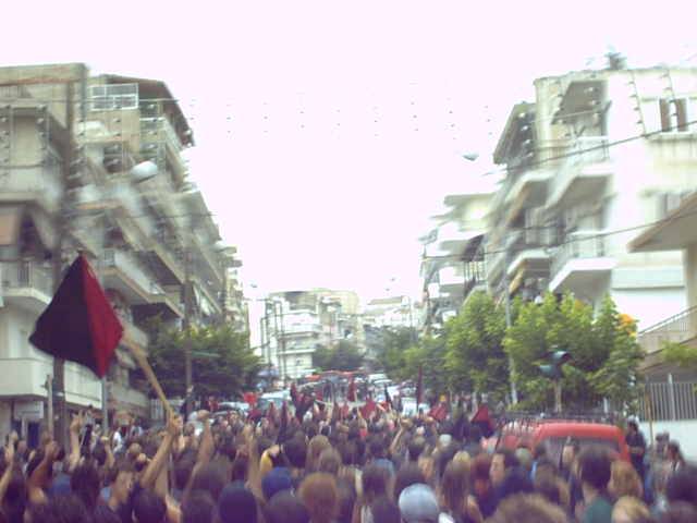 Protests against the policies of the European Union (EU) took place in Thessaloniki, Greece, from 17-22 June 2003. Singled out for criticism were the EU's refugee and immigration policies, complicity in the war in Iraq, and slashing of pensions. More than 125,000 people took part. A significant minority of demonstrators went beyond a condemnation of specific EU policies and proposed replacing capitalism with a directly democratic economic and political system. A full overview can be found in the