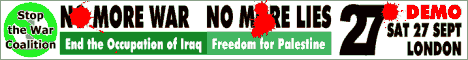 The Stop the War Coalition, along with CND and the Muslim Association of Britain, is therefore calling a demonstration on 27 September in London. Help make it a huge protest which Tony Blair cannot ignore.