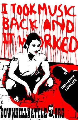 "Till now, the story of the major label (RIAA) lawsuits against people sharing music on the internet has been an issue for internet libertarians," said Holmes Wilson of Downhill Battle, "But we have a chance to completely decorporatize the music industry within 2-3 years! This issue needs to be on activists' radar screens."