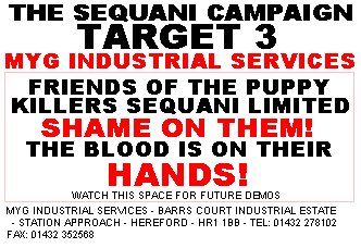 If PACA don't receive a positive response to the request that MYG SEVER ALL TIES with Sequani ltd, the noise will go on for as long as it takes and just get LOUDER and LOUDER until this company show some compassion for those innocent, defenceless animals that are dying at Sequani's hell hole.