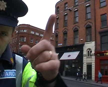The Inspector then pushed him off the street (that’s the bit on RTE), there another garda, pushed and manhandled him the remaining way down dame St.