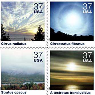 http://www.lightwatcher.com/chemtrails/hos.html In June of 2004 the U.S. Postal Service will release a new set of Cloudscape postage stamps. These images are startling and thought provoking, as more than half of the cloudscape classifications depicted are visually identical to their man-made knockoffs -- the chemtrail cloud formations.