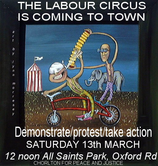 There was a meeting recently of people involved in the Manchester peace movement and many good ideas for posters came out of that. This is a poster me and ros made from one of those ideas which the NZ artist has said we can use (its a freaky trick cyclist for the labour conference circus...), for anyone who wonders what "asking Blair to tell the truth" will prove