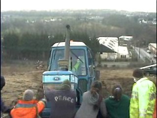 Five men and two women were demonstrating at the entrance to the wood yesterday at around 5pm to stop the development of the Sirhowy Enterprise Way. The protesters were trying to stop the tractor moving logs.