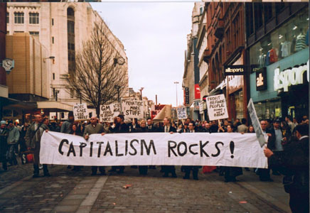 Ironic march for capitalism heads towards conference