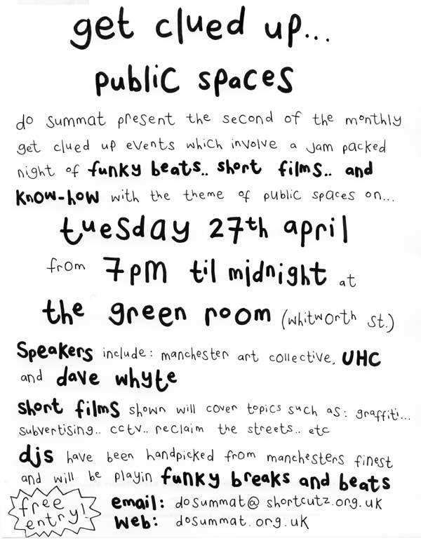 Tuesday 27th April, from 7pm til midnight at the Green Room on Whitworth