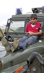"I was scared when they got me at first. I thought they would put me in prison... I was scared a stone would hit me," Muhammed said, nursing a split lip Thursday, exactly a week after his hours-long detention. Stone throwing mostly stopped when he was on the jeep. "I cried on the hood of the jeep, and when I saw my dad."