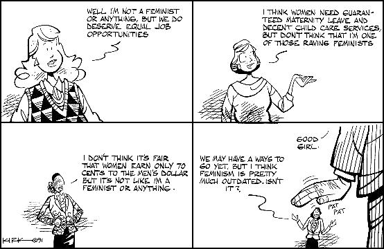 Men and women both pay lip service to equality, but even that possibility seems in danger of being extinguished. Abortion is unavailable to many and in real danger of being lost. Women get paid less for worse jobs and get beaten more by their lovers than by their enemies. So hey, where are the feminists?