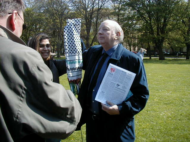 The march, numbering around 500, went along Market Street, Waverley Bridge and Princes Street. The full length of the march stretched from the Balmoral Hotel to the foot of the mound – a distance of a third of a mile. Turning left up the Mound the lively and vociferous marchers sang “We all live in a terrorist regime” and “Tony Blair terrorist! George Bush terrorist”, “Sharon terrorist” and “Stop the war, Stop the crime, Israel out of Palestine!”