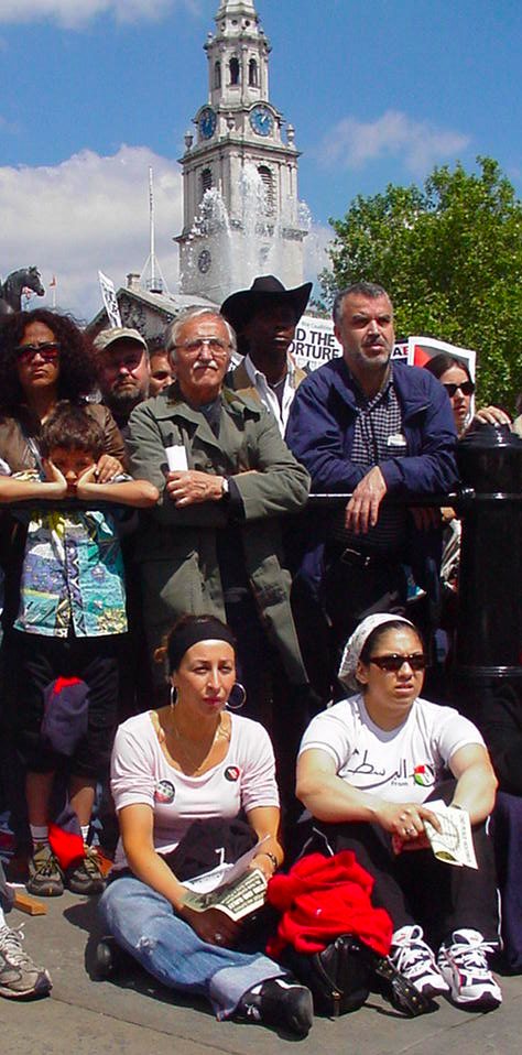 http://www.mabonline.net When rally in Trafalgar Square was over, many people heeded the call by the Palestinian Solidarity Campaign to protest in Whitehall opposite Downing Street against British complicity in the war crime atrocities being committed by the Israeli Occupation Force in Rafah, Gaza Strip. For links to the photos I took of that protest, see one of the comments at the foot of this page.