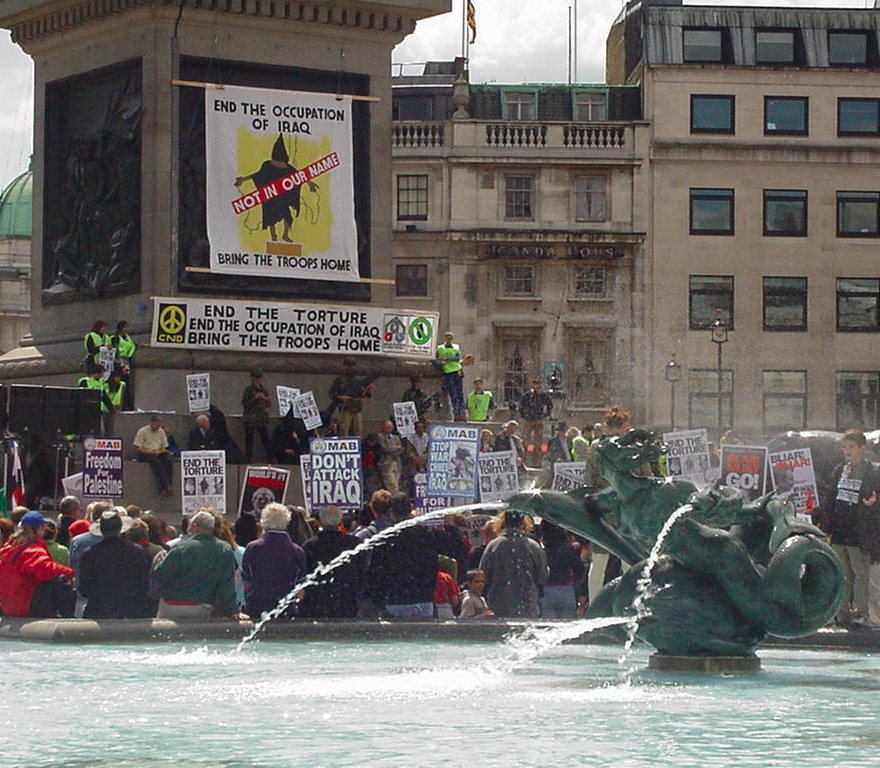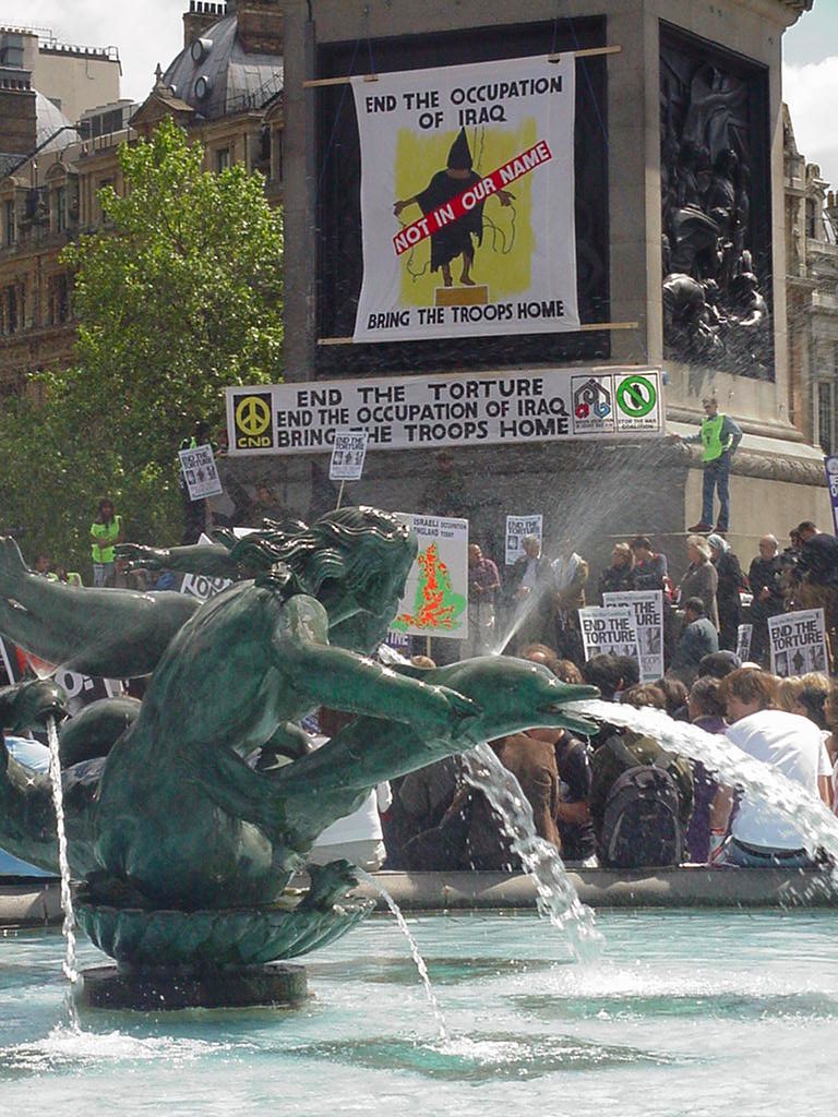 The most excellent street theatre group "Theatre of War" preceded the march and formed a backdrop to the speakers on the plinth of Nelson's Column, recreating in the flesh some of the abuses handed out to Iraqis by US occupation forces. For more, see: