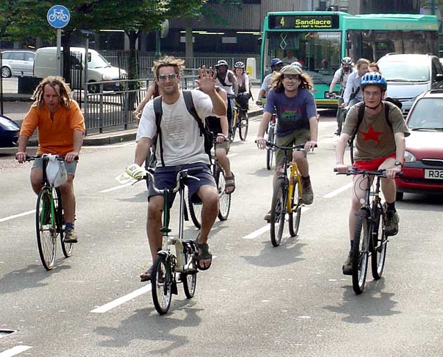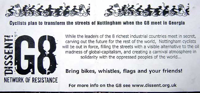 A few folks cylced in Nottingham today, in support of environmental matters. To draw attention to an awareness of the madness of global capitalism.