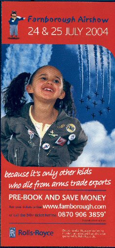 My sister reports a small number of actions at Farnborough but most were very low key and to be blunt not that effective (the above is an honurable exception). She said the majority of people she spoke to simply didn't relate the show to the arms industry (despite the war planes flying overhead !).