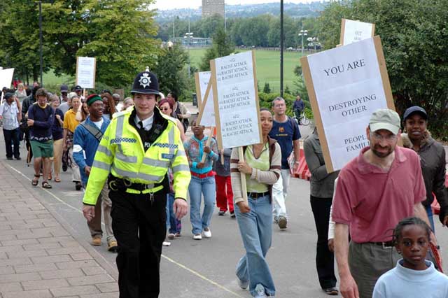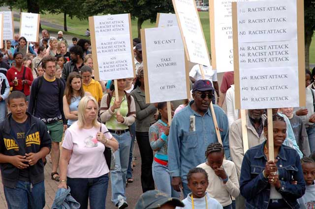 Black people have been here in Nottingham for over 500 years. You would think that they could claim they lived here by now. But discrimination is so obviously, still an issue. There is ever increasing violence, here in Nottingham. Well it's a city. But there has been an increase were race has played a part. People beaten to the ground, simply for being of another colour. God! 21st century, or what ...... Anyway folks locally have had enough, and wanted to protest to draw more attention to the issue, and to prompt the authorities for a little more action.