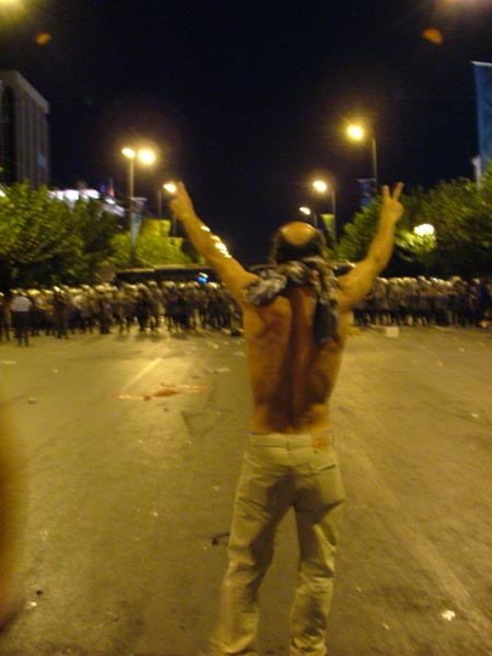 3000 thousands people marched yesterday 27/8 to athens -greece to protest against the visit of the colin Powell.One of the butchers of the people of IRAQ.The demonstration actually forbitten by the goverment and never reached at the end,which was the American embassy.Riot police stopped them outside the parliament and the demonstrators had a small conflict with the police pigs.Another demonstration will have today(saturday).A demonstration also done in thessaloniki outside the U.S.A-ssasins embassy.Greek goverment shows that a butcher like powell is welcome but is not welcome the anti-war movement. The demonstrators shouted against the USA occupation in Iraq (like: FREEDOM FOR PALAISTINE AND IRAQ ,VICTORY to the armed resistane of people of IRAQ,FUCK USA,NAJAF NAJAF FALLUJA VIETNAM) and of course against the olympic games