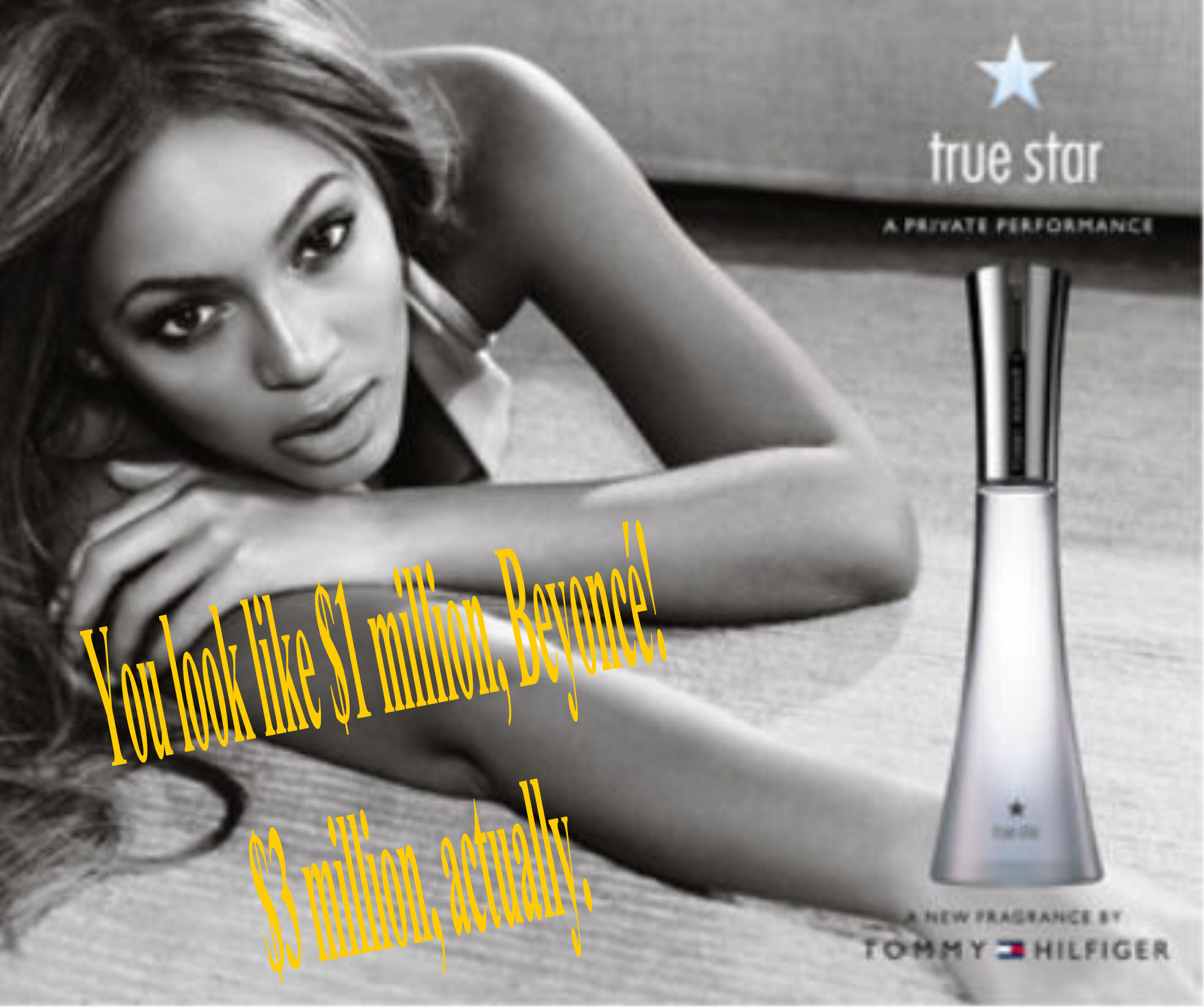Although some people have sold their body and soul for less, all Beyoncé had to do for her Hilfiger millions was put on the designer’s new fragrance True Star, which has just been launched to salvage the fashion house’s ailing fortunes. Now whether or not I agree that Beyoncé – who has made a career out of choosing pretentious names – is a true star is one question I will leave unanswered. Far more important is the issue of whether the singer’s labours deserve such an outrageous daily wage – even if it does cover the use of her name on billboards and in TV commercials.