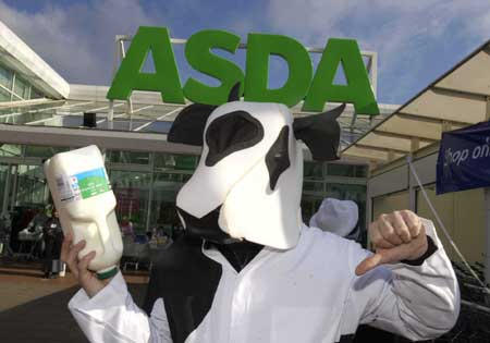 Greenpeace Campaigner Ben Ayliffe said, "We're here in Cardiff to give out the Greenpeace Cowpat Awards for supporting GM milk and to expose supermarkets that are sneaking GM milk into shoppers' baskets. Most people out doing their weekly shop would be horrified to know that they've been pouring GM milk on their cornflakes. People in Wales have said no to GM and it's time supermarkets like Asda, Tesco and Safeway ditched their GM milk."