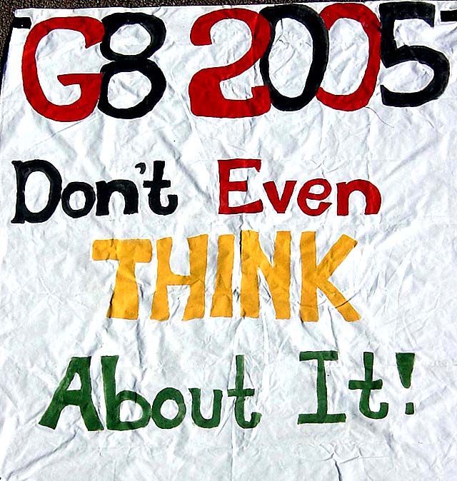 In advance of the main G8 meeting at Gleneagles, there are a number of mini-meetings. This one was for Environment & development ministers meeting at Breadsall Priory Hotel, a few miles north of Derby. However, demonstrations, outside of a market area, within the City of Derby, were banned.