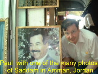 I told him of my bus journey from Aqaba to Amman where I took off one of my shoes and whacked a picture of Bush and Blair to great applause.