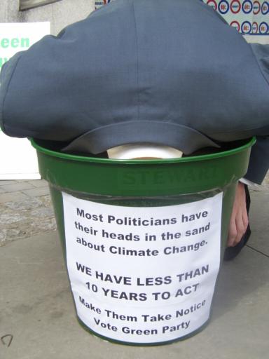 The Green Party say the big three parties have "got their heads in the sand” over the catastrophic effects of climate change – and went to the Farmer's Market on Sunday to graphically prove their point! Heeley candidate Rob Unwin stuck his head in a specially constructed "bucket of sand” to illustrate his point about the other parties.