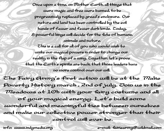 More info to be posted soon about the Fairie Army actions... join us...