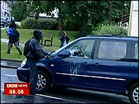 No evidence of police counteraction is seen on the BBC footage. Standard respose of police