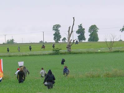 We walked a short distance before reaching the fence. We were right at the front of the march and there was a moments confusion as the march came to an end. We were all told to turn right and head back.
