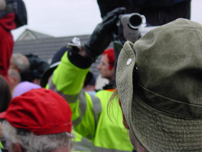 The confusion ended when the meeting in the park began. An organiser stated that the march had not been cancelled and to call family and friends who were arriving to still come. Traffic into the village was barley any. I was most dissapinted with the polices attempts to ruin this day. We also herd reports that police on the outskirts were turning people (including press) away and telling them there was trouble going on in the village...a pack oflies as the village was so quiet you could just about hear a pin drop!