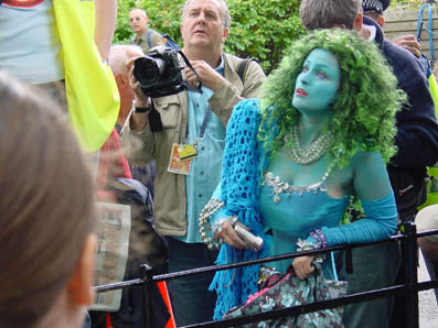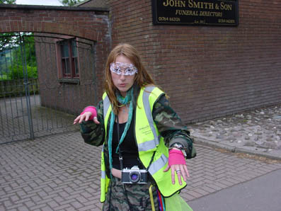 We turned right an noticed a large field with no proper security fence....an open invatation? As we approached one man climbed over and stood to the side of the field...his pic is above...he was then joined by a masked girl wearing a blue scarf ...her pic is above too....the press and protesters watched and waited for something to happen.