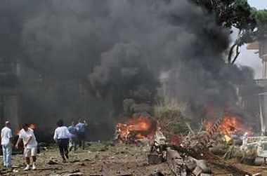 The bomb targeted Murr's motorcade in the busy Christian suburb of Antelias. Security officials said 12 people were also wounded in the explosion, audible for several km (miles).