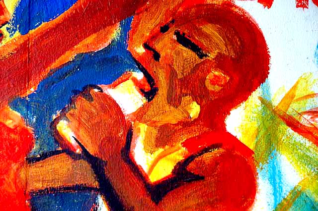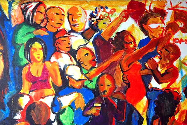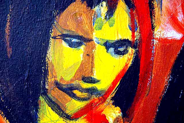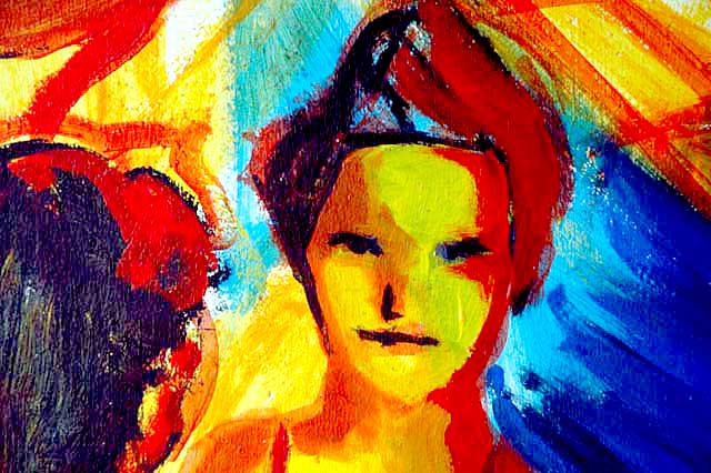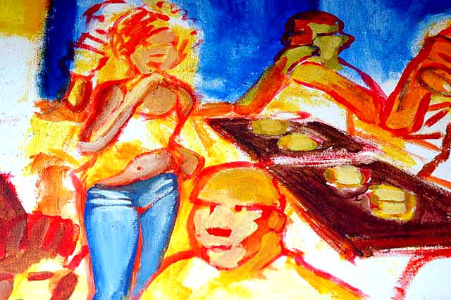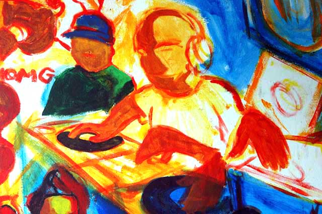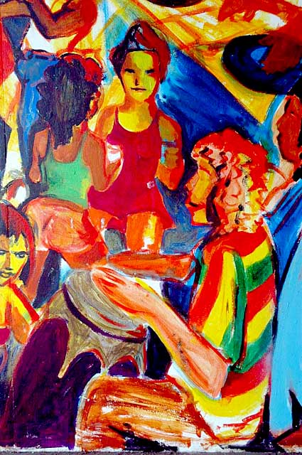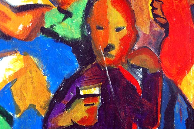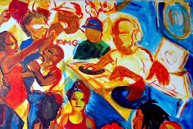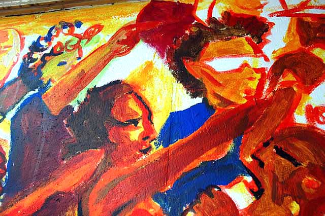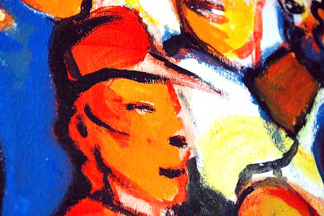 Bload brush strokes, colour and lots of energy. Quite a vibrant piece really.