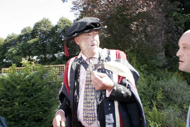 Agent Meringue delivered just desserts in fine form for his regular and repeated abuse of the environment and its supporters. There are many more photos out there - and also a long list of his quotes ... could someone get them up here?
