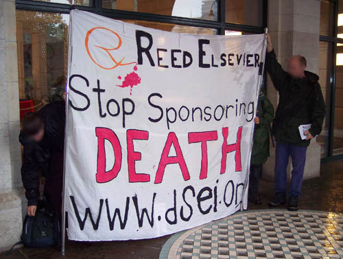 On Reed Elsevier- Reed Elsevier is largely a publishing company. The people working for RE didn't sign up to a company that is an integral part of the UK (and global) arms industry. they don't consider themselves to be part of that industry. May of them may be anti war, anti arrms, anti militarism. many of them won't want their company to be part of the arms trade just as we don't, so they are potential allies in our campaign to stop DSEi. DSEi is a small part of what Reed Elsevier do and it should be made into a major liability for the company.