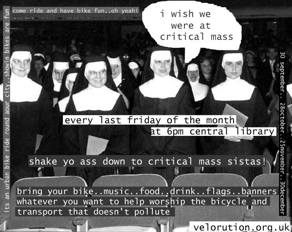 don't worry if you got no bike..its also a celebration of travelling round the city without polluting it..so come on your skateboard..shopping trolley..space hopper..trike or just run alongside!