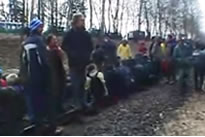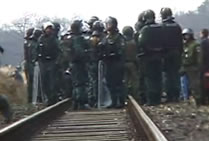 Sunday November 20: Hundreds of people spread into the woods along the railway tracks, setting up barricades [pictures 1 | 2] on roads to sabotage police logistics for tonight when the transport is expected in the region. Tractors are being used to block the special police forces. Farmers blocked the tranport route close to Gorleben with 120 tractors ( picture ), later in the night they were cleared by police forces. On its way through Southern Germany, the train was stopped several times by blockades. An unknown number of people are arrested.