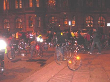 Critical Mass was declared an illegal assembly and riders were threatened with arrest in the case of forming a group again on the same day. Indeed Critical Mass did not reconvene, although most people found their way back to Manchester's social centre for a cup of tea.