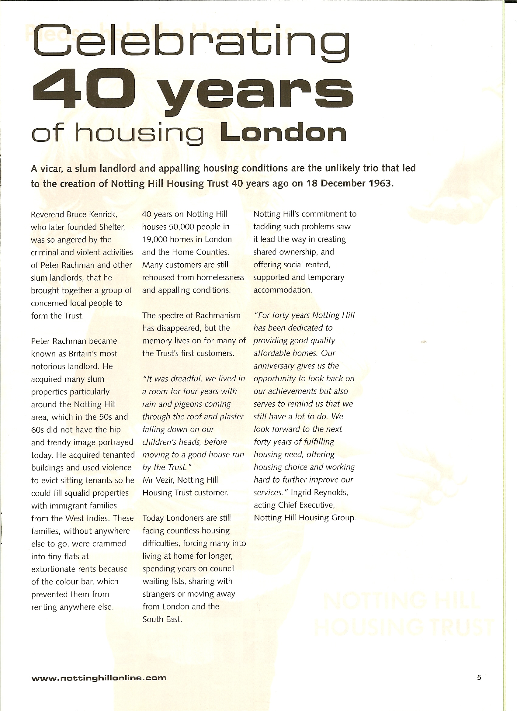 THE CHAIRMAN SEEMS TO PREFER PROMOTING HOMOSEXUALITY AND RACE ISSUES - DIVIDING COMMUNITIES - RATHER THAN PROVIDING GOOD HOUSING AND EFFECTIVE REPAIRS IN NOTTING HILL HOUSING TRUST PROPERTIES