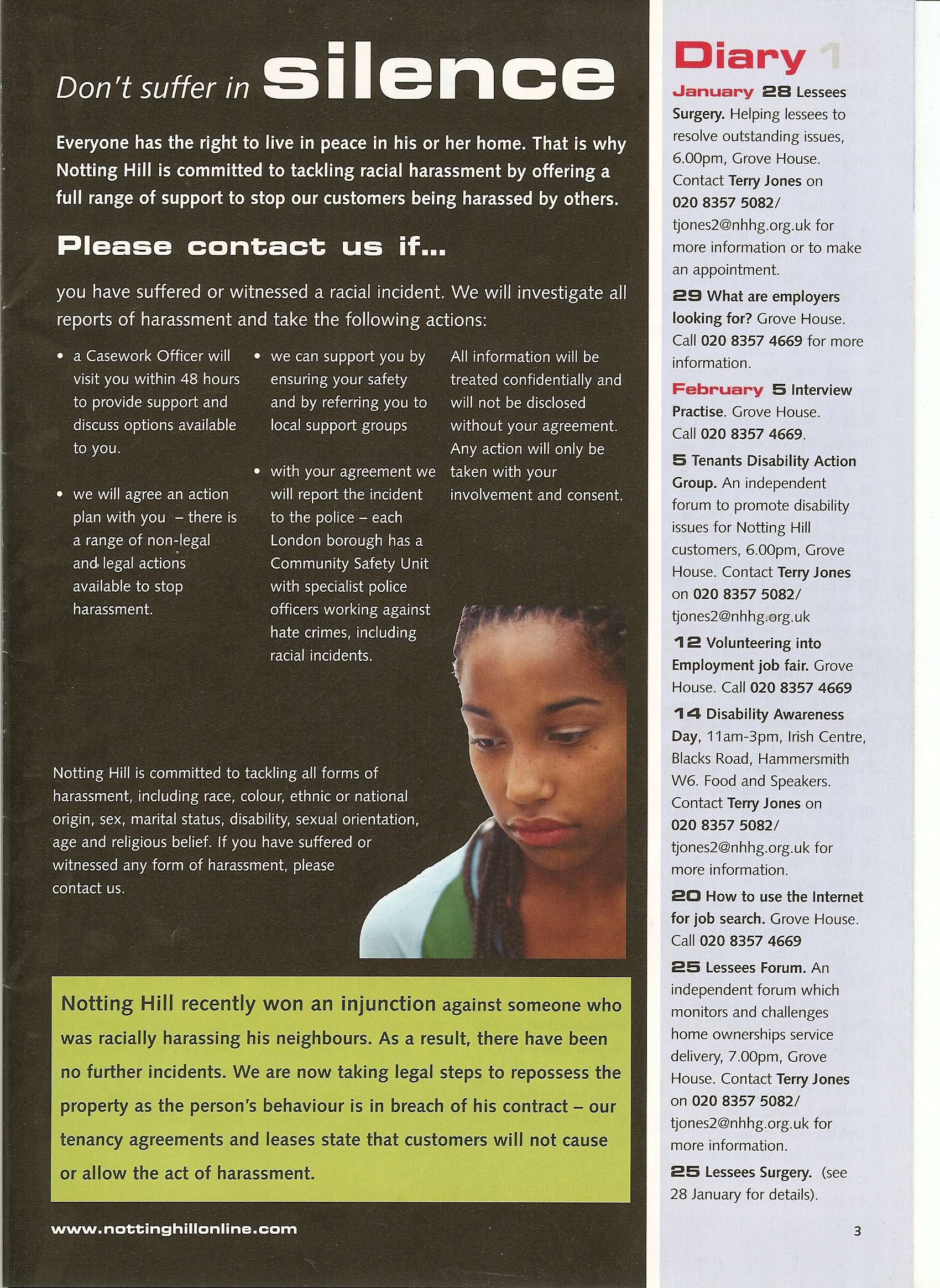 Yet the TENANTS FROM HELL are supported and though they might be involved in drug dealing or might suffer mental trauma and act in an ANTI SOCIAL way to the good pleasant sociable and inspirational tenant the management of NOTTING HILL HOUSING TRUST conveniently [for them] misrepresent and subvert the roles which are conveniently reversed by NOTTING HILL HOUSING TRUST.