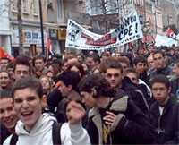 The vote in the Senate on the CPE was brought forward by a week to pre-empt the national day of protest called by students’ unions for the 7th of March. The day of protest went ahead in spite of this, with 400,000 people attending 160 demonstrations according to police estimates. The demonstrations were mixed with trade unionists, students, the unemployed and education workers. Students from the Lycées (roughly equivalent to secondary schools) were well represented at demonstrations. There have been occupations and strikes country wide, mainly focussed around universities. Roughly half of France’s universities have been occupied, Rennes II university has been blockaded by anti-CPE protesters and strikers since early February. On Tuesday 7th the Sorbonne in Paris, a key site in May 1968, which has not been the site of an occupation since was occupied by students
