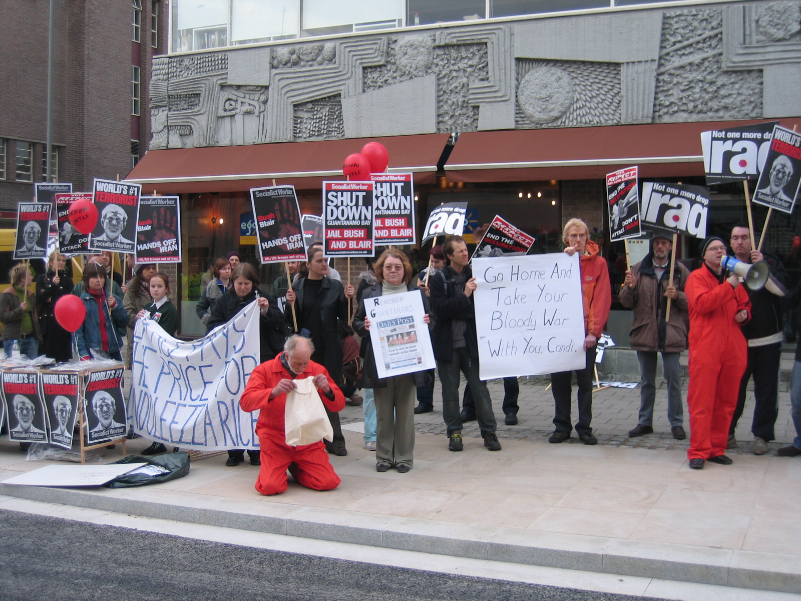 Protests outside Condoleeza Rice's hotel in Liverpool