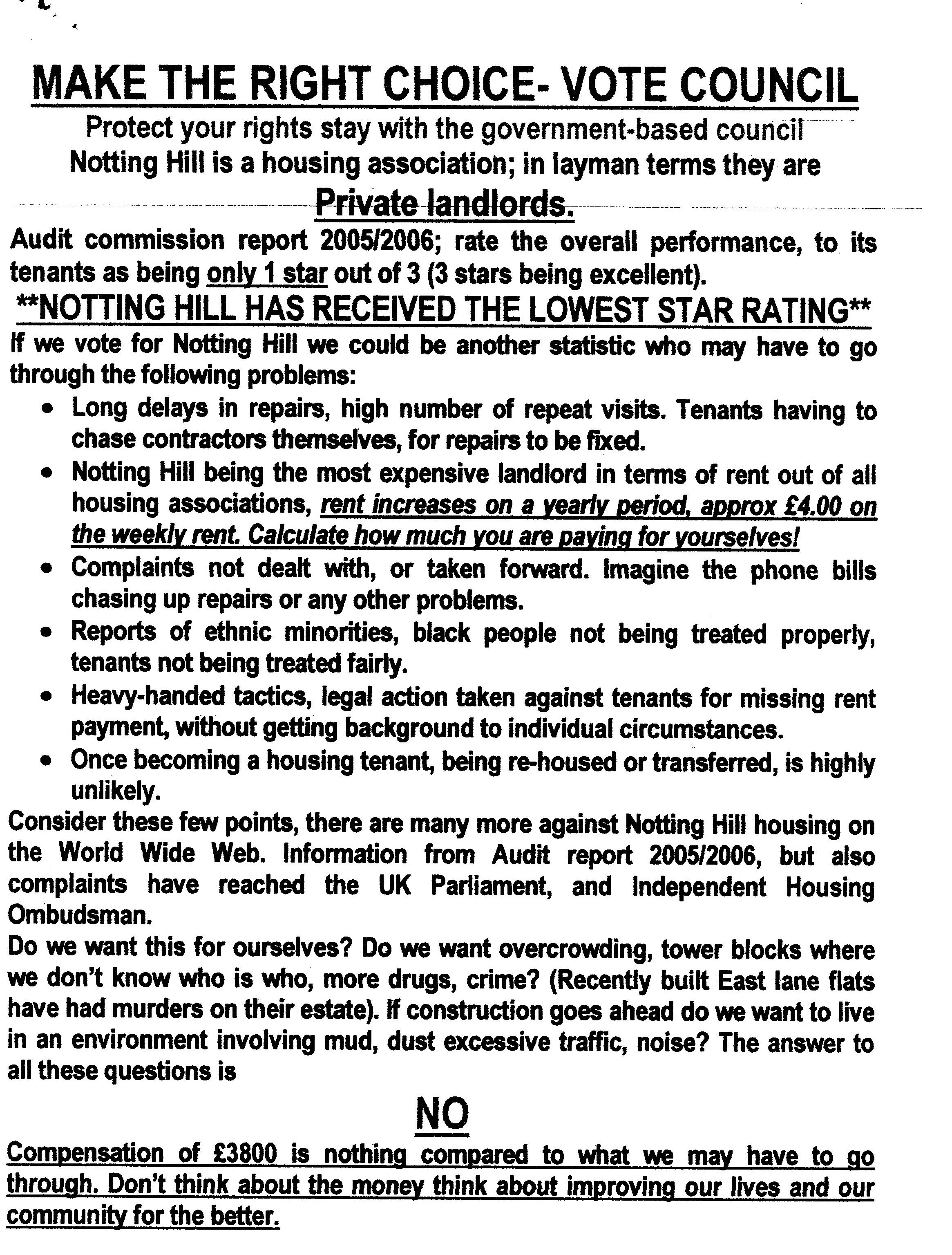 Come 3 MAY 2007 the LABOUR PARTY and all those at Notting Hill Housing Trust will find out the hard hard way. Why? Because they never ever had the sense to listen to you. They thought that to confront you was the only way. But it is the way of the bully. What fools!!!