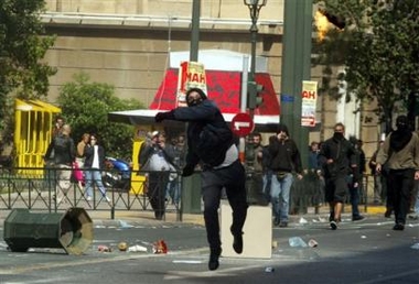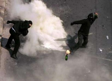 Thousands of people marched the streets of Athens today protesting Condoleezza Rice's visit to Athens. Several left wing parties as well as a big number of anarchist demonstrators declared that the American secretary of state is not welcome in Greece or any other place in the world for that matter. The Greek government in full cooperation with their honourable ally decided not to allow the protesters to march to the United States' embassy. The left-wing protesters demanded that they'd be allowed to march wherever they pleased and when the police rejected their demand they started charging the police lines using flag poles. The police responded using tremendous amounts of teargas, the crowd started to fold back and the anarchist block took their place. Immediately the clashes became bigger and more violent, dozens of molotov cocktails, as well as, stones, bricks, and crowbars were used to fight off the police. Banks, large department stores and government cars were either torched or destroyed... Some arrests took place with that of 17year old carrying a molotov cocktail being the most serious one.