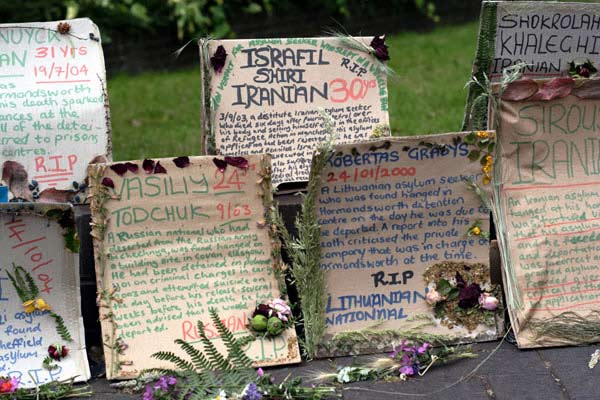 There was also a visual display of hand-made 'grave stones', from the ARC vigil last week, bearing the details and stories of asylum seekers who took their own lives incarcerated in detention centres or having given up hope whilst awaiting the Home Office decision A selection of such victims stories were read and told.