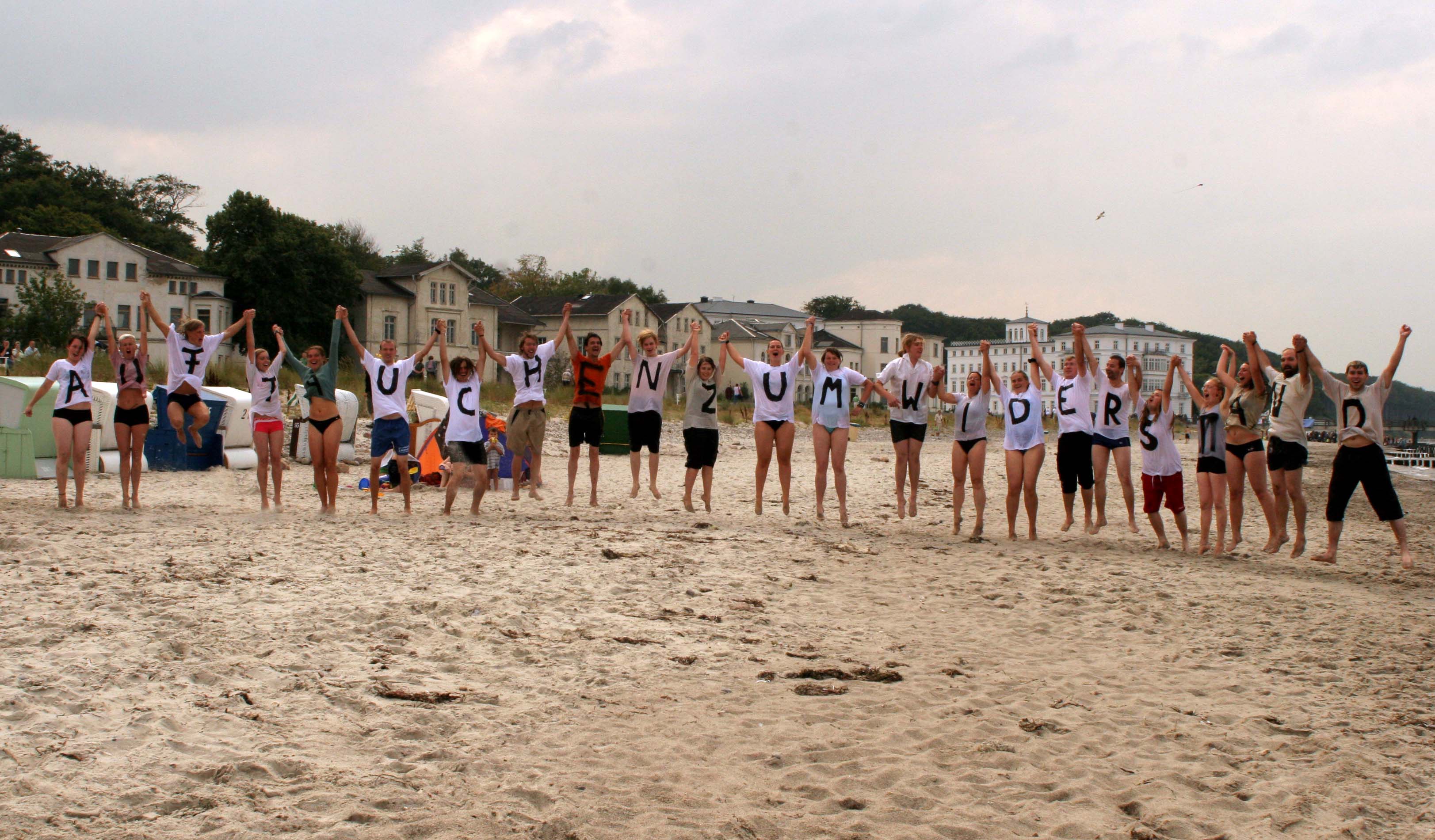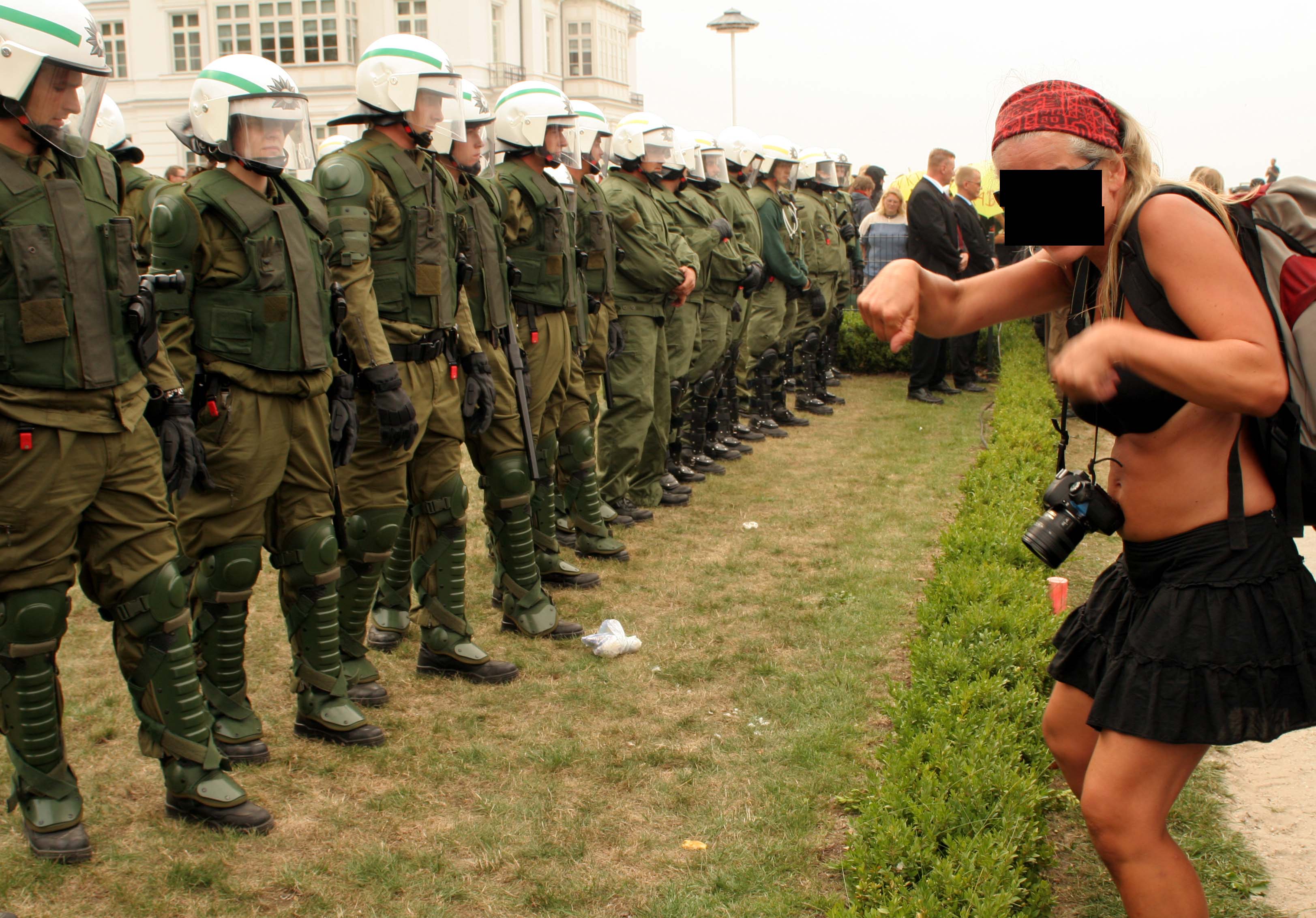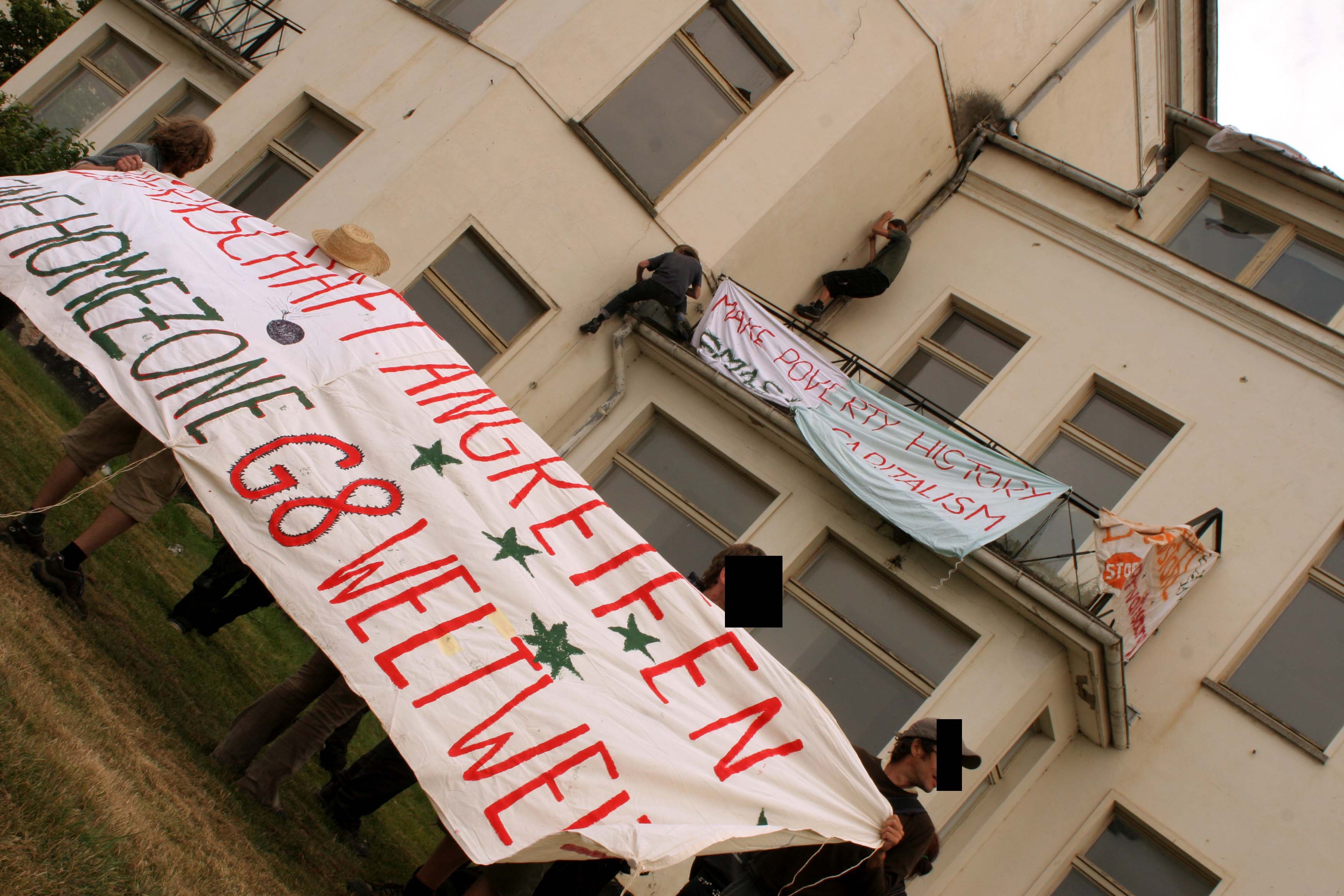 They hung banners on an empty building adjacent to the hotel, and generally made their presence felt at the seaside resort, which faces the Ost (or Baltic) Sea.