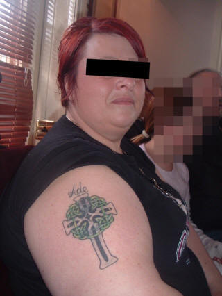Typically, it was not this fascist thug's fellow Nazis who came to his aid, but stupid liberals - This, despite the fallen fascist clearly sporting Nazi regalia. So for you idiots who were fooled by the whining of this battered fascist, who ignored his ignsignia, or didn't notice him take off his jacket and turn it inside out, for the fools who felt sorry for him and bought him coffee, and for the scum who called the police; Here's a couple of pics of your pal at the 'Wolf's Camp' of hardline Nazi outfit the 'Wolf's Hook White Brotherhood'. Look them up on the web if you want to see more of these Hitler-worshipping freaks.