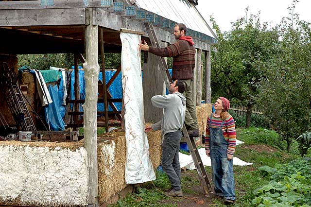 EcoWorks: Straw Bale work on "eco-building" in St.Anns :: Part 1