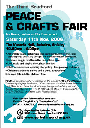 Yorkshire CND Peace and Craft Fair - 11th November - Saltaire