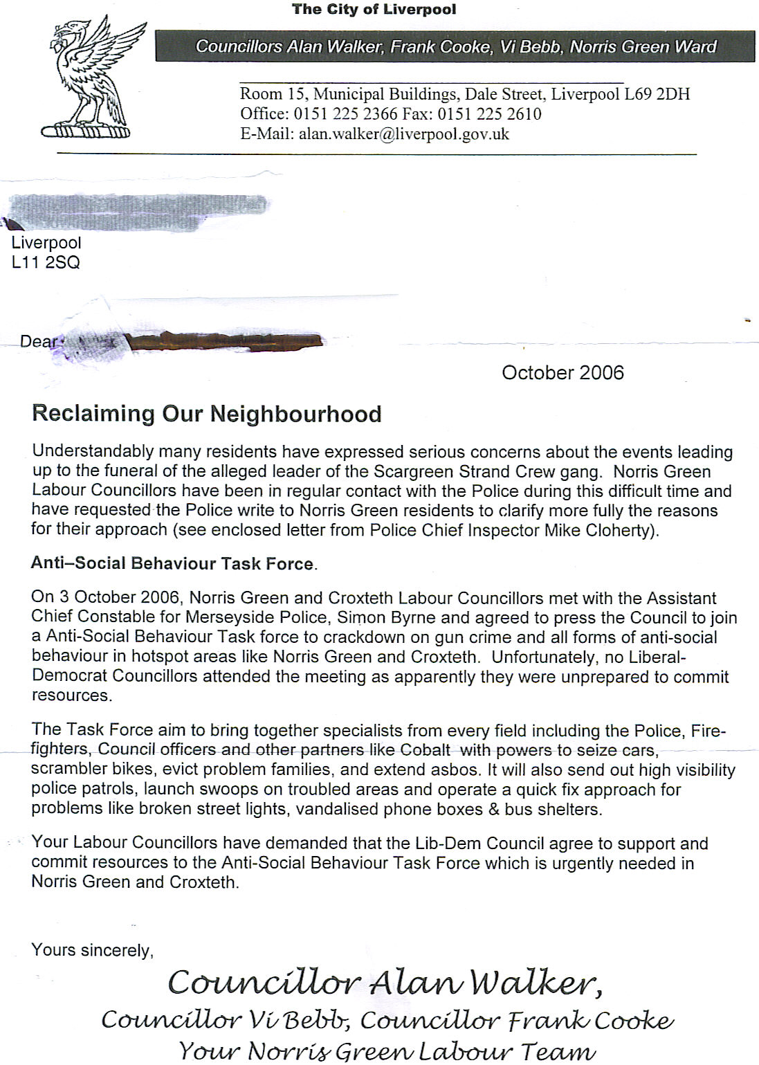 Letters sent to all Norris Green residents